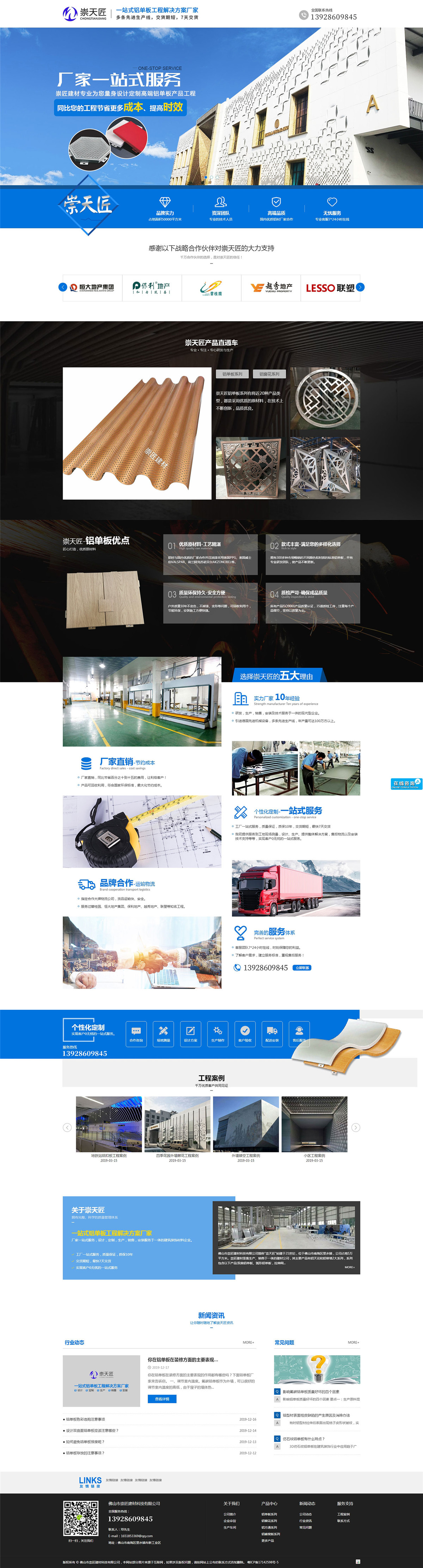 佛山市崇匠建材科技有限公司簡稱"崇天匠"始建于21世紀,位于佛山市南海區里水鎮,公司占地5萬平方米。崇匠建材是集生產、銷售于一體的建材公司,其主要產品有鋁天花和鋁幕墻2大系列,系列包含以下產品:雙曲鋁單板、弧形鋁單板,拉伸網、鋁方通,鋁掛片,鋁方通、鋁條扣,鋁扣板,鋁蜂窩,鋁格柵;憑借一流的設備,卓越的品質和優質的服務及產品質量的保障,崇匠建材產品深受全國消費者的信賴,產品暢銷國內外,東南亞,中東,歐美,全球,業務。
