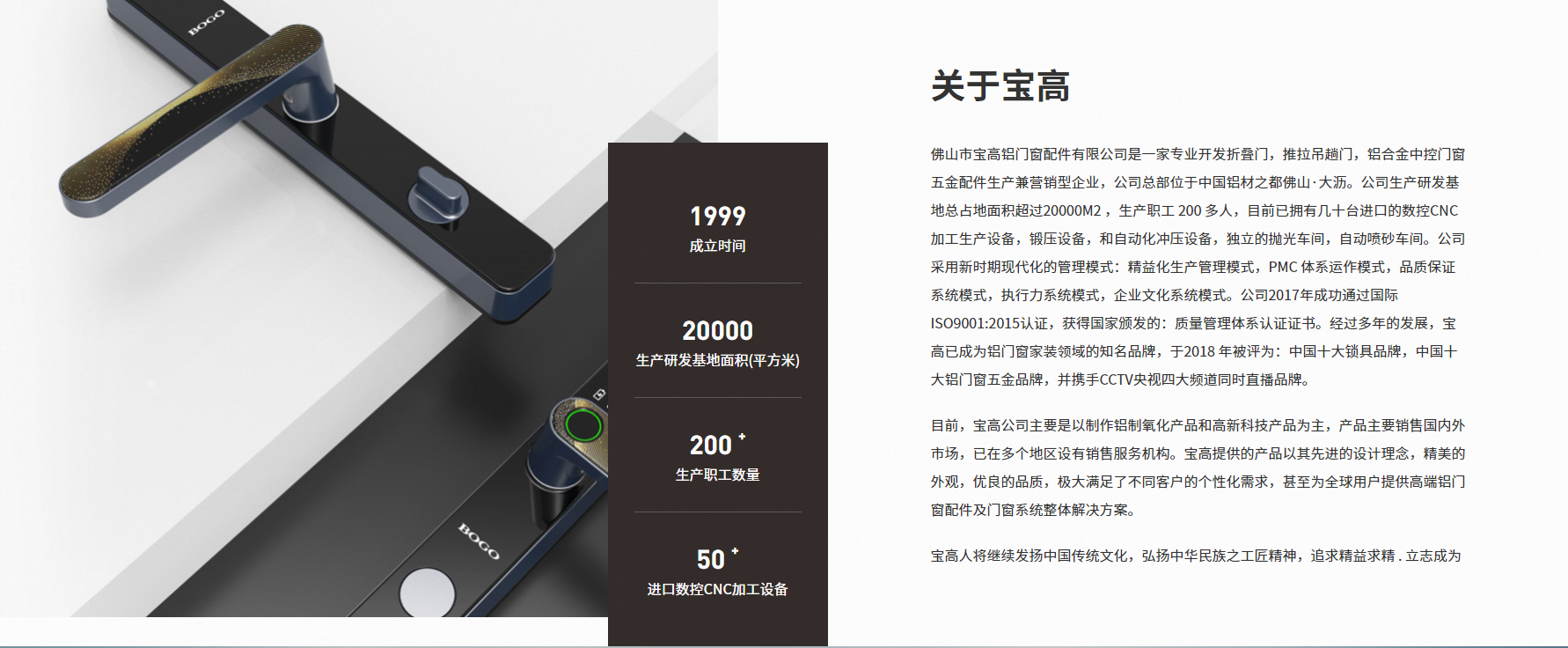 今天來分享一個折疊門網站設計案例——佛山市寶高鋁門窗配件有限公司