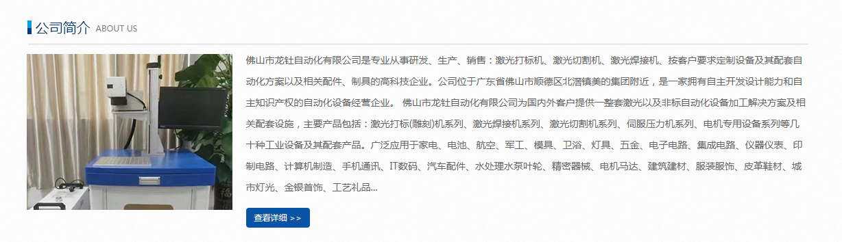 今天來分享一個激光打標機網站設計案例分享之佛山市龍釷自動化有限公司