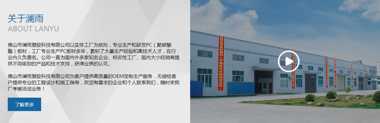 佛山瀾雨塑膠科技有限公司是一家精于聚碳酸酯PC系列產品的應用研究和開發,致力于為國內外客戶提供專業化和個性化服務的公司,公司總經理徐瀾女士擁有二十二年從業經驗,曾一手締造北方PC板材集群產業,領眾工廠門店和相關產業,為行業發展起到至關重要的作用。