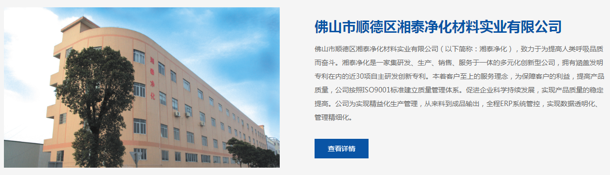 今天來分享一個空氣過濾網(wǎng)網(wǎng)站建設(shè)案例——佛山市順德區(qū)湘泰凈化材料實業(yè)有限公司